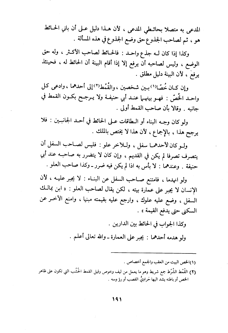وَكَذَا الْجَواب فِي الْحَائِط بَين الدَّاريْنِ
