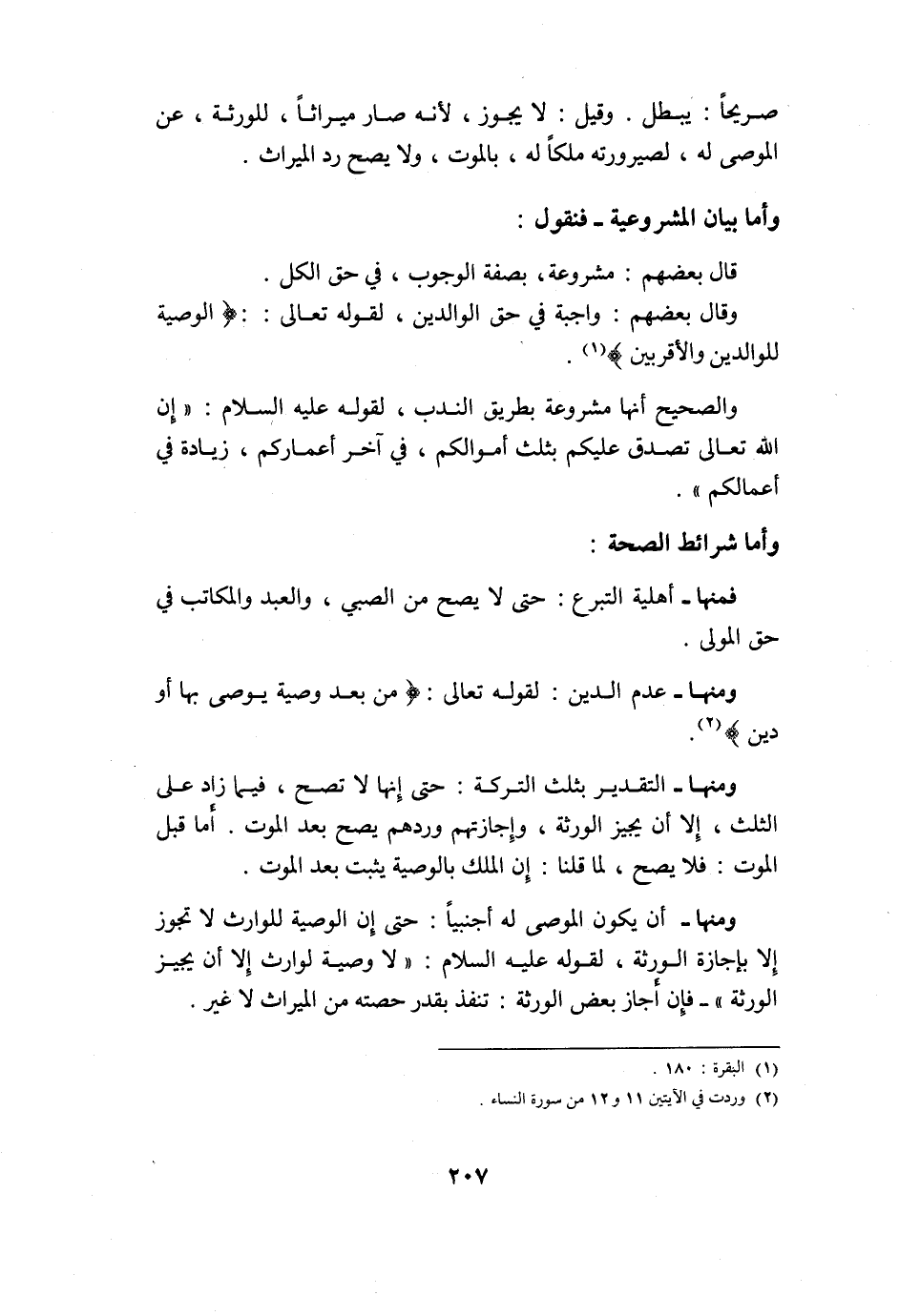 وَالصَّحِيح أَنَّهَا مَشْرُوعَة بطريقة النّدب لقَوْله عَلَيْهِ السَّلَام إِن الله تَعَالَى تصدق عَلَيْكُم بِثلث أَمْوَالكُم فِي آخر أعماركم زِيَادَة فِي أَعمالكُم