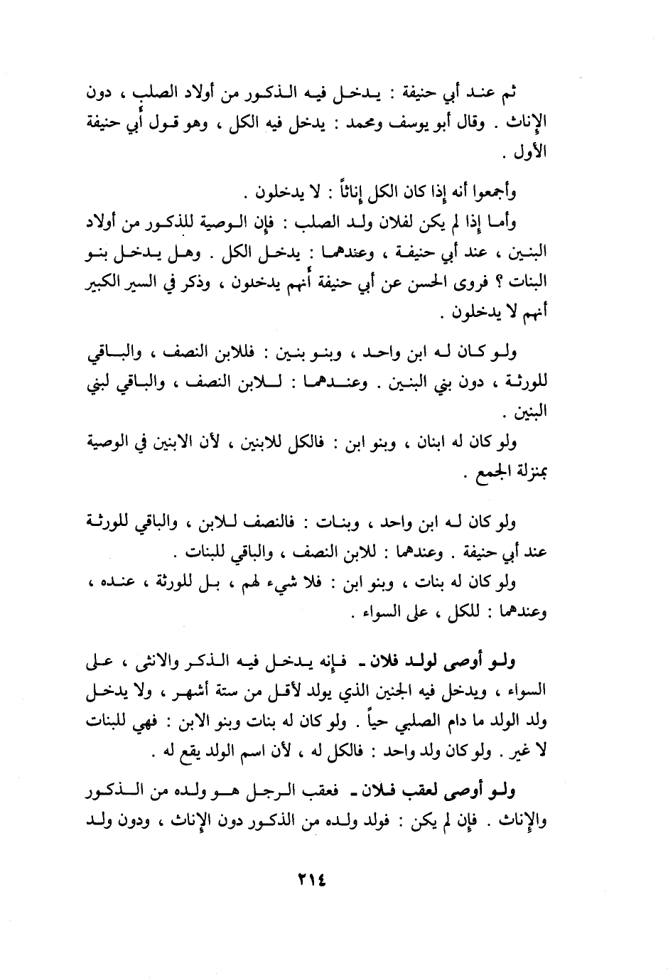 ثمَّ عِنْد أبي حنيفَة يدْخل فِيهِ الذُّكُور من أَوْلَاد الصلب دون الْإِنَاث