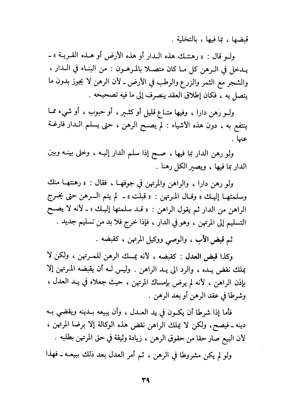 وَلَو رهن دَارا وفيهَا مَتَاع قَلِيل أَو كثير أَو حبوب أَو شَيْء مِمَّا ينْتَفع بِهِ دون هَذِه الْأَشْيَاء لم يَصح الرَّهْن حَتَّى يسلم الدَّار فارغة عَنْهَا