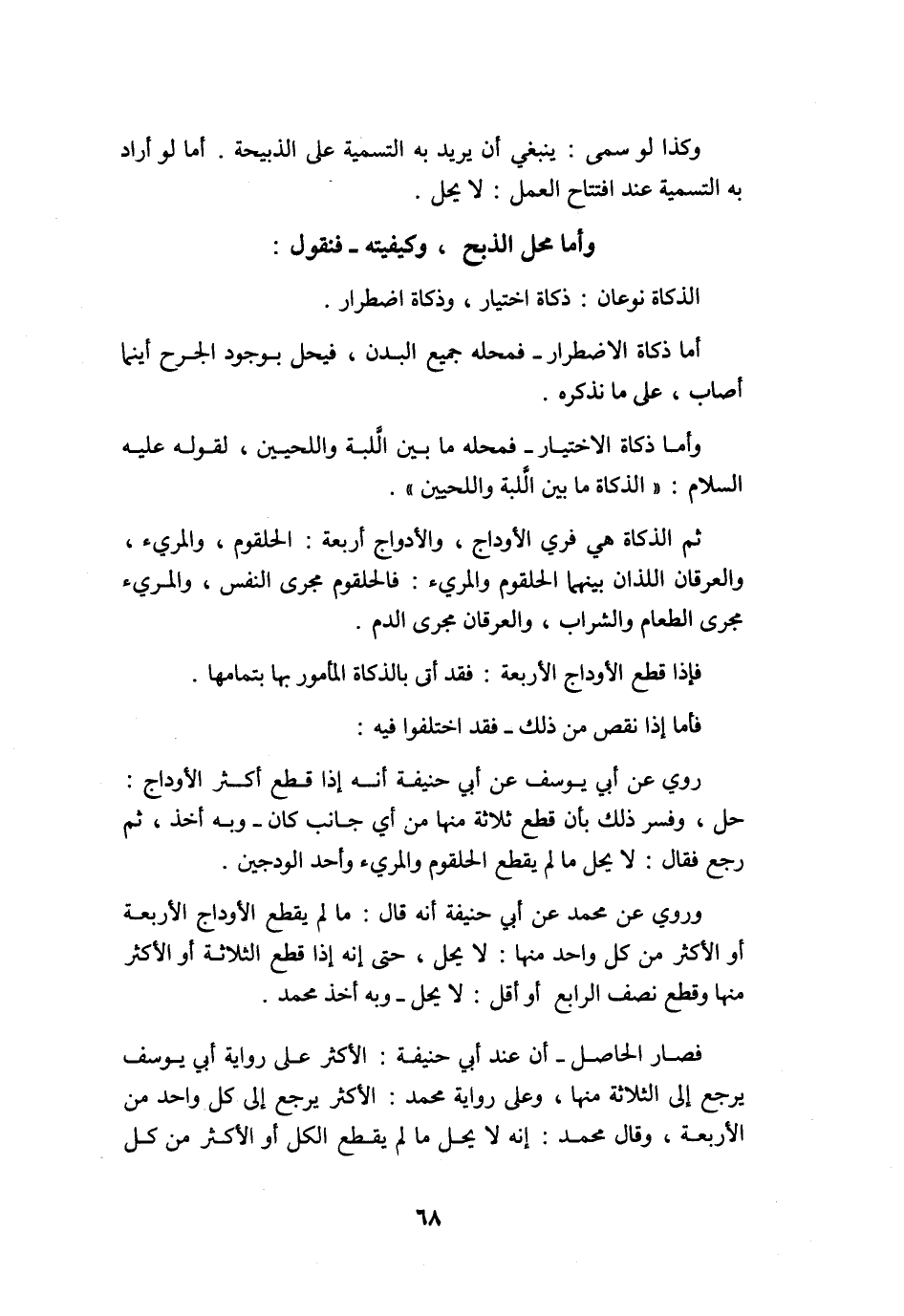 وَأما مَحل الذّبْح وكيفيته فَنَقُول الذَّكَاة نَوْعَانِ ذَكَاة اخْتِيَار وذكاة اضطرار