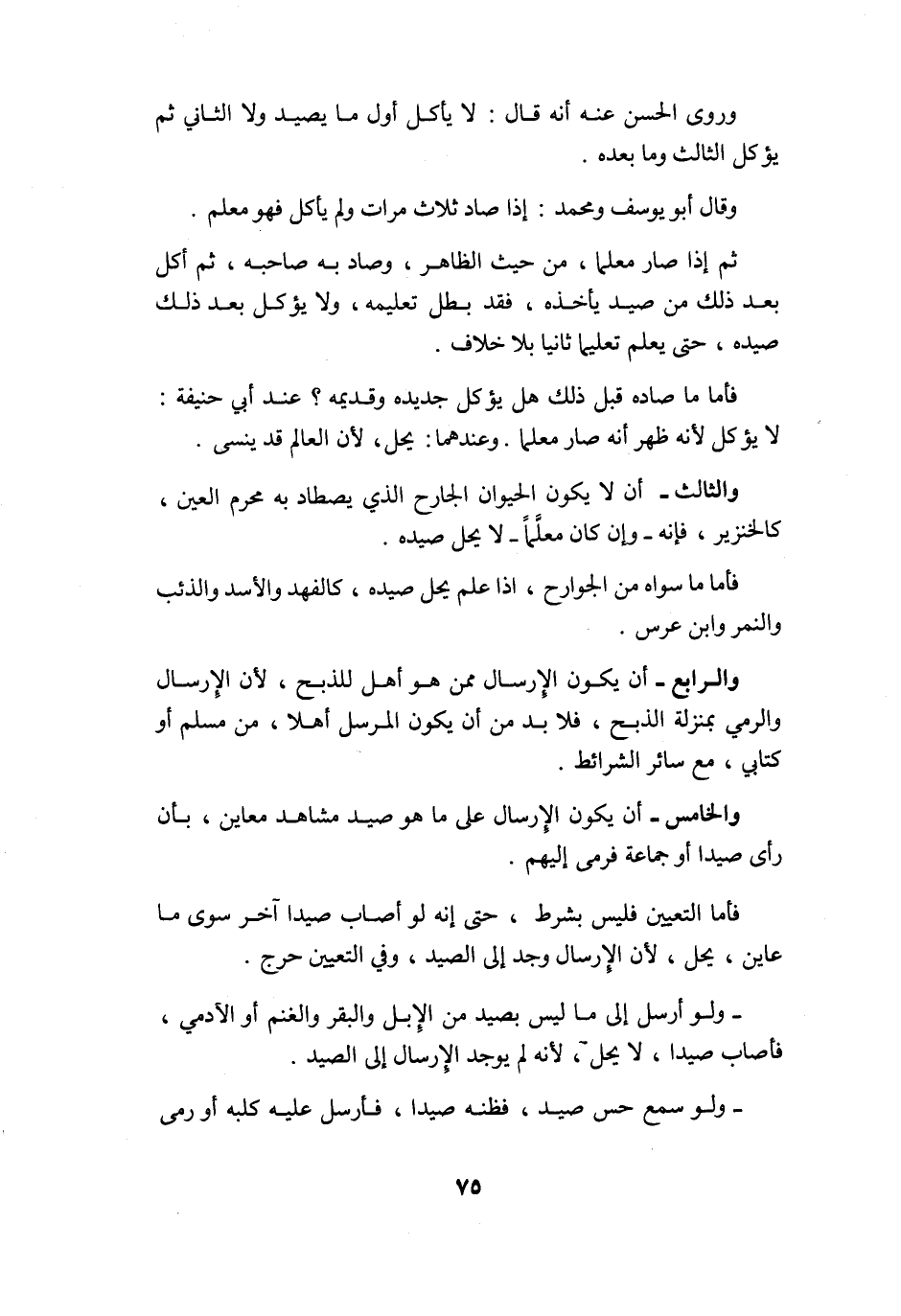 الرَّابِع أَن يكون الْإِرْسَال مِمَّن هُوَ أهل للذبح لِأَن الْإِرْسَال وَالرَّمْي بِمَنْزِلَة الذّبْح فَلَا بُد من أَن يكون الْمُرْسل أَهلا من مُسلم أَو كتابي مَعَ سَائِر الشَّرَائِط