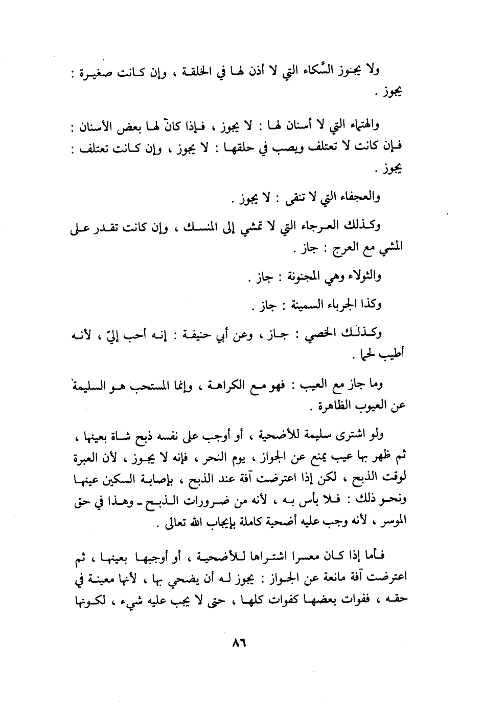 وَمَا جَازَ مَعَ الْعَيْب فَهُوَ مَعَ الْكَرَاهَة وَإِنَّمَا الْمُسْتَحبّ هُوَ السليمة عَن الْعُيُوب الظَّاهِرَة