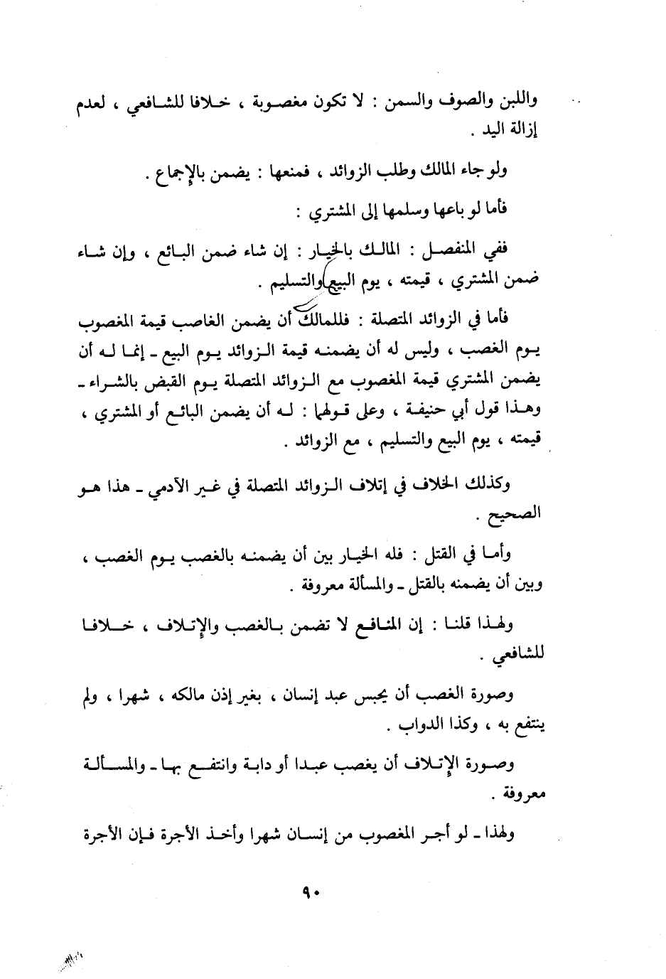 وَاللَّبن وَالصُّوف وَالسمن لَا تكون مَغْصُوبَة خلافًا للشَّافِعِيّ لعدم إِزَالَة الْيَد