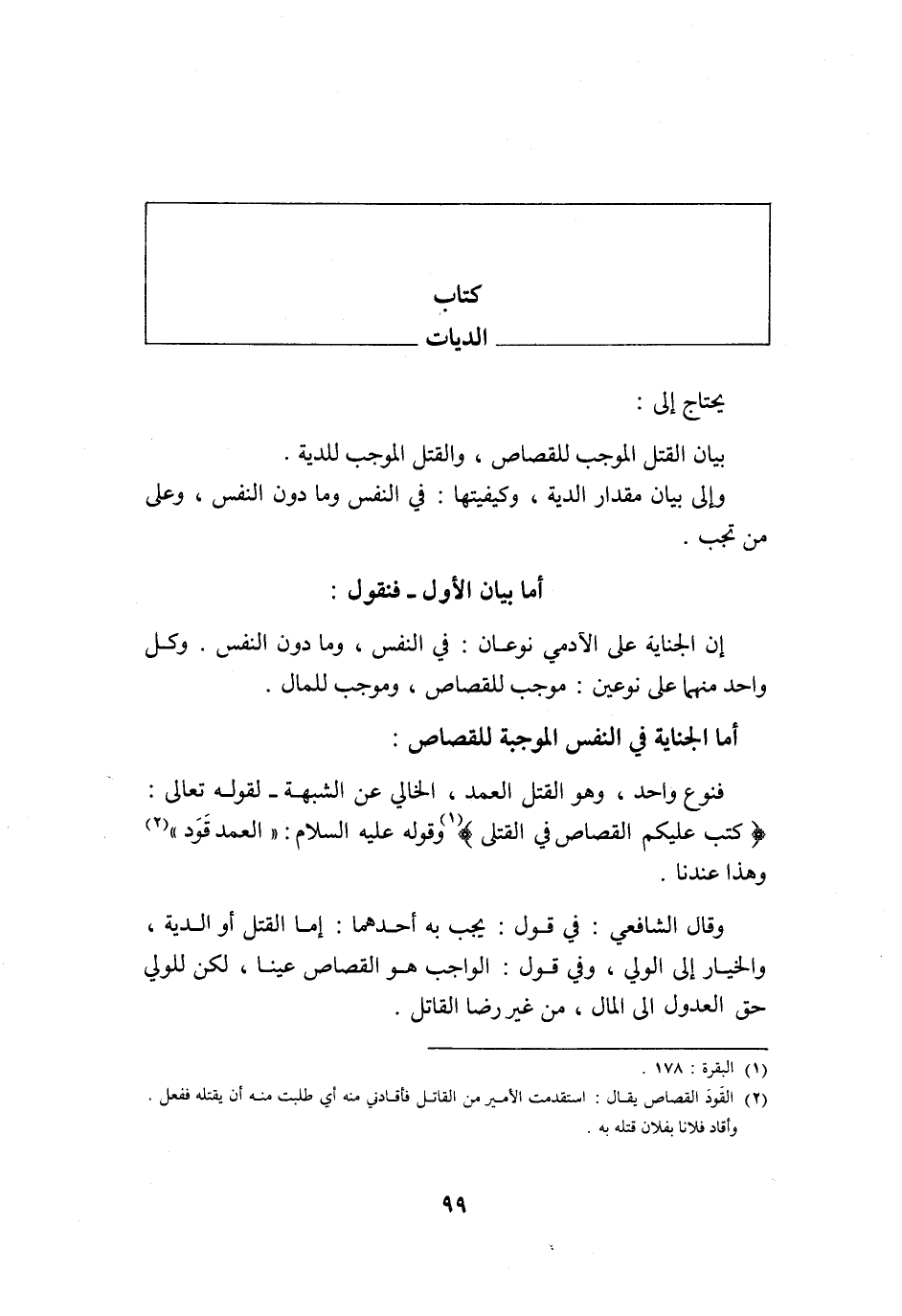 وَإِلَى بَيَان مِقْدَار الدِّيَة وكيفيتها فِي النَّفس وَمَا دون النَّفس وعَلى من تجب