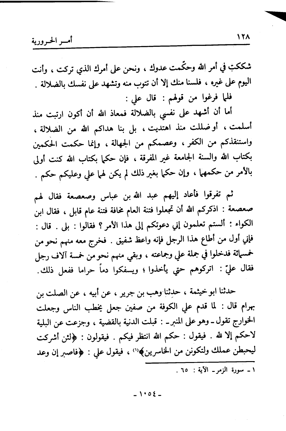 [2] ولعل الله صرفهم عن ذلك، ومكن من هو أخبث منهم لينظر كيف يعملون، وليعرف الناس أنهم مبطلون في دعاويهم وأنّهم كافرون لنعمة الله، جاحدون لحق الله معادون لأولياء الله، مناصحون لأعدائه، فهم من طواغيت الأمة وفراعنتها!!! قال السيد أبو طالب: أخبرني أبي قال: أخبرنا محمد بن الحسن بن أحمد بن أدريس، عن سلمة بن الخطاب (ظ) عن معاوية بن الحكم عن محمد بن موسى عن الطيالسي قال: