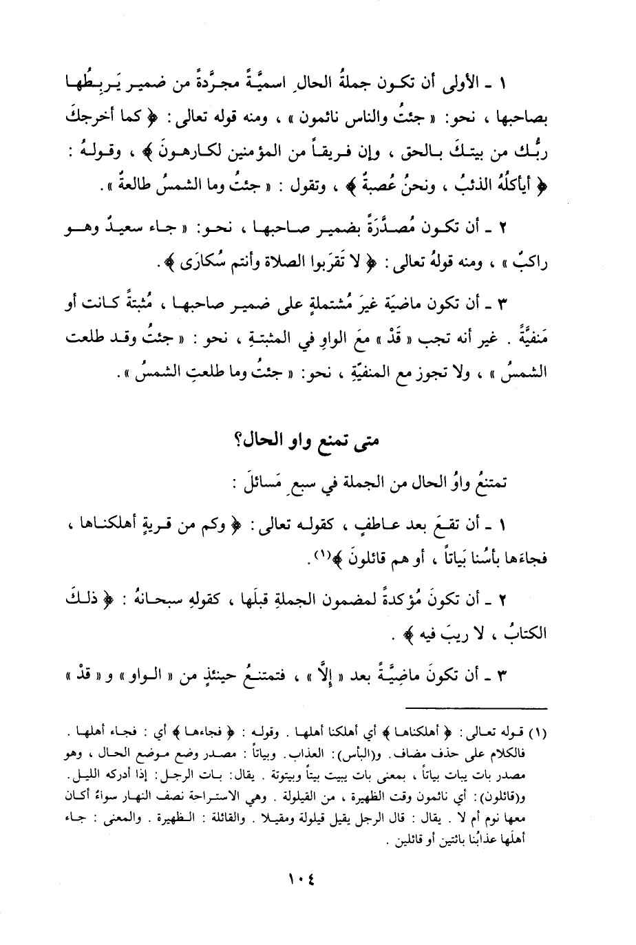 تمتنعُ واوُ الحال من الجملة في سبعش مسَائلَ
