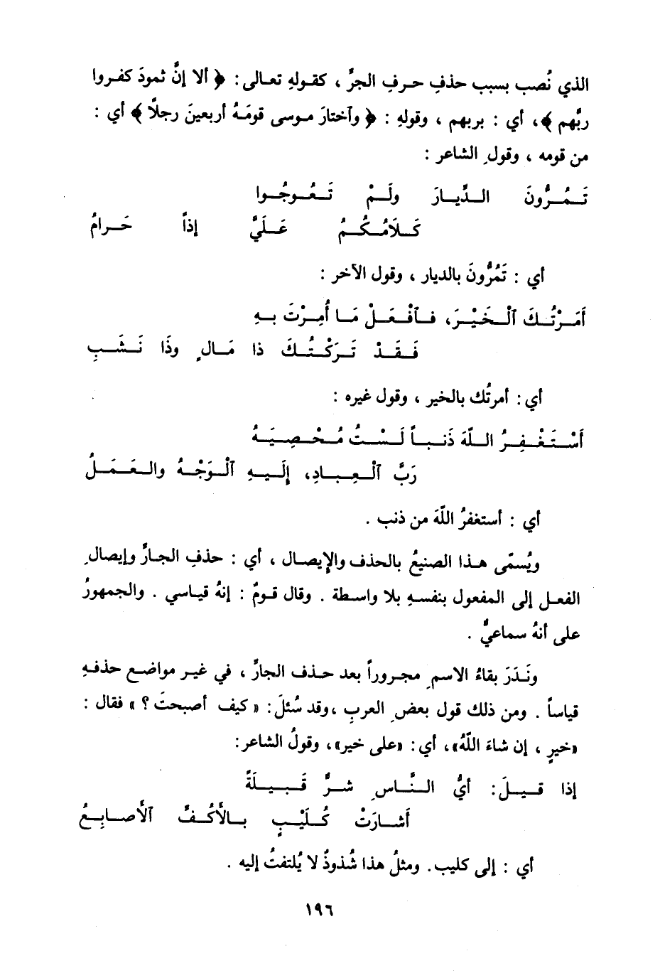 ويُسمّى هذا الصنيعُ بالحذف والإيصال، أي حذفِ الجارَّ وإيصالِ الفعل غلى المفعول بنفسهِ بلا واسطة. وقال قومٌ إنهُ قياسي. والجمهورُ على انهُ سماعيٌّ.