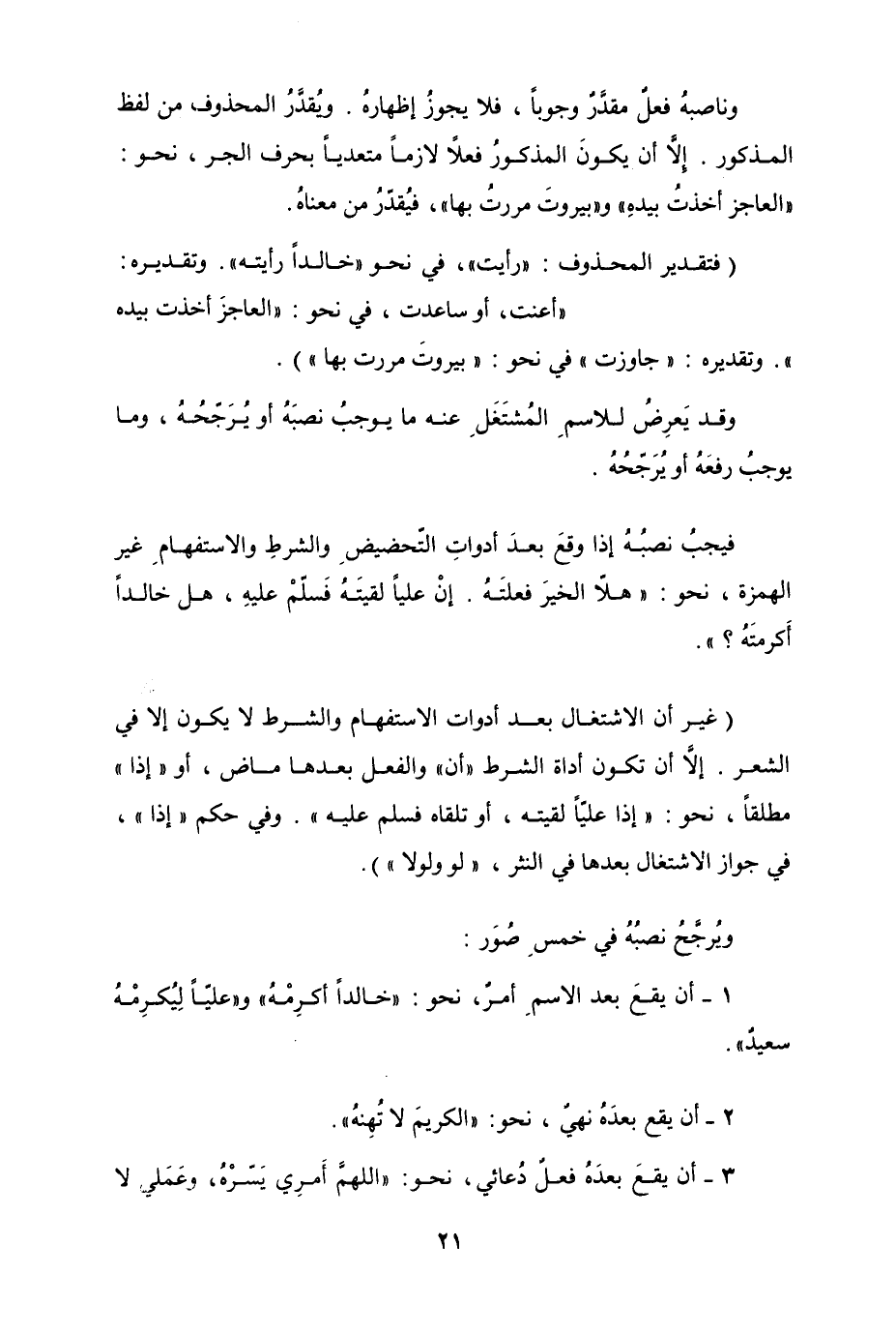 وتقديره "أعنت، أو ساعدت، في نحو "العاجزَ أخذت بيده". وتقديره "جاوزت" في نحو "بيروتَ مررت بها") .