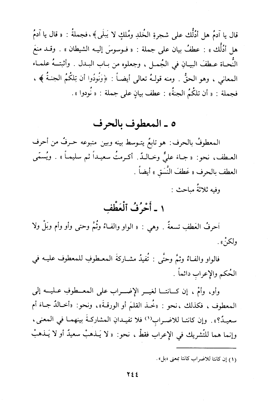فالواوُ والفاءُ وثمَّ وحتَّى تُفيدُ مشاركةَ المعطوفِ للمعطوف عليه في الحُكم والإعرابِ دائماً.