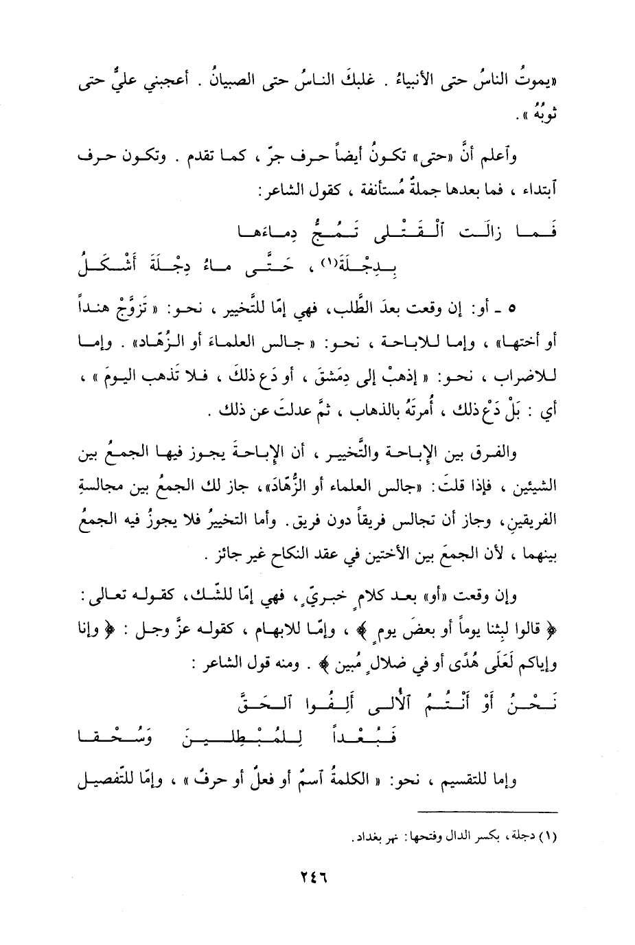 "يموتُ الناسُ حتى الأنبياءُ. غلبكَ الناسُ حتى الصبيانُ. أعجبني عليٌّ حتى ثوبُهُ".
