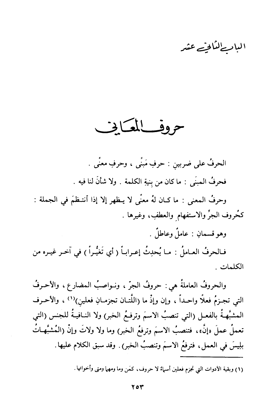 الحرف على ضربين: حرف مبنى، وحرف معنى.