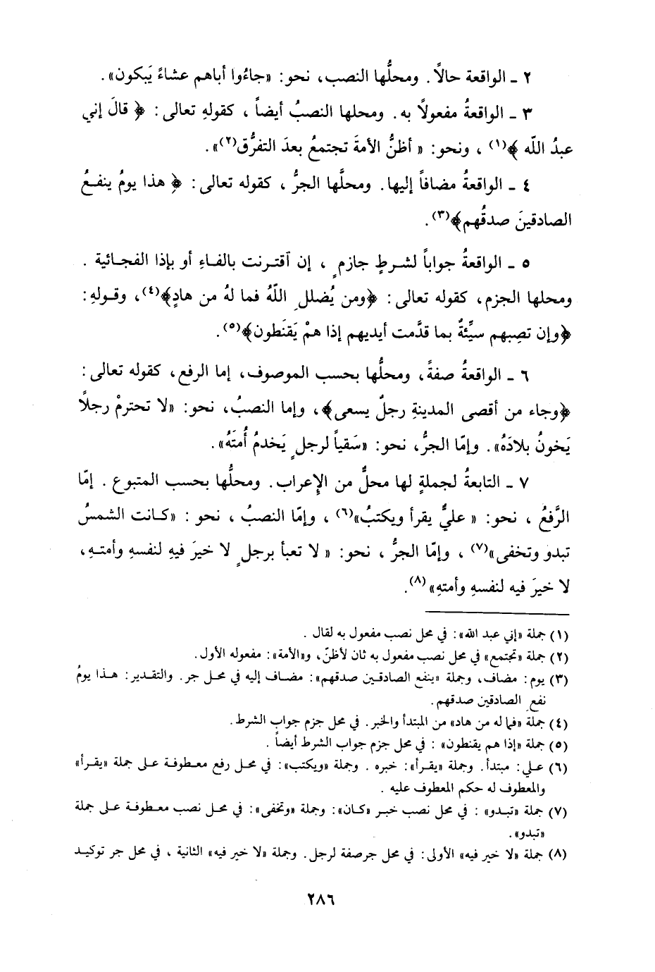 4- الواقعةُ مضافاً إليها. ومحلُّها الجرُّ، كقوله تعالى {هذا يومُ ينفعُ الصادقينَ صدقُهم} .