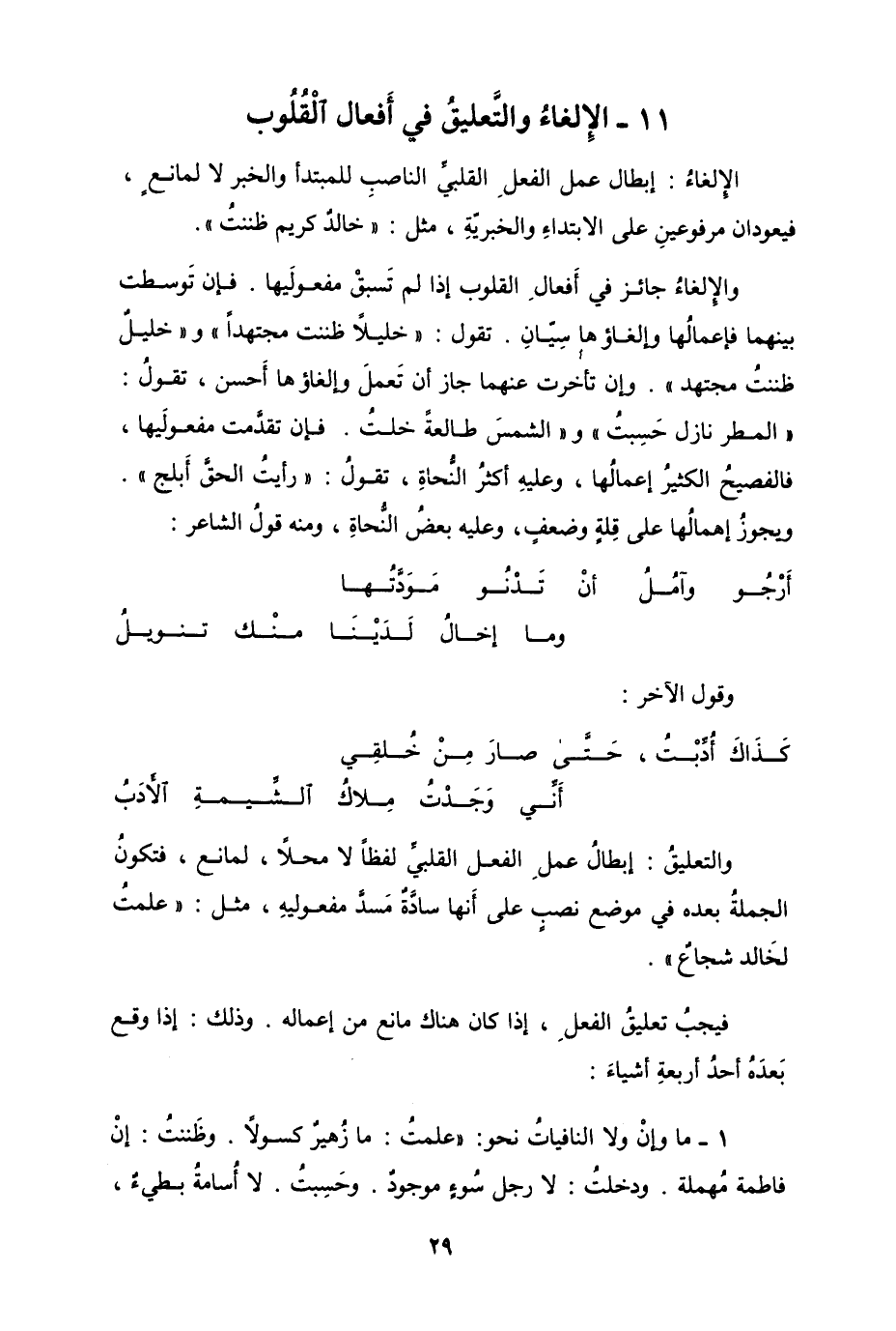 11- الإِلغاءُ والتَّعْليقُ في أَفعال الْقُلُوب