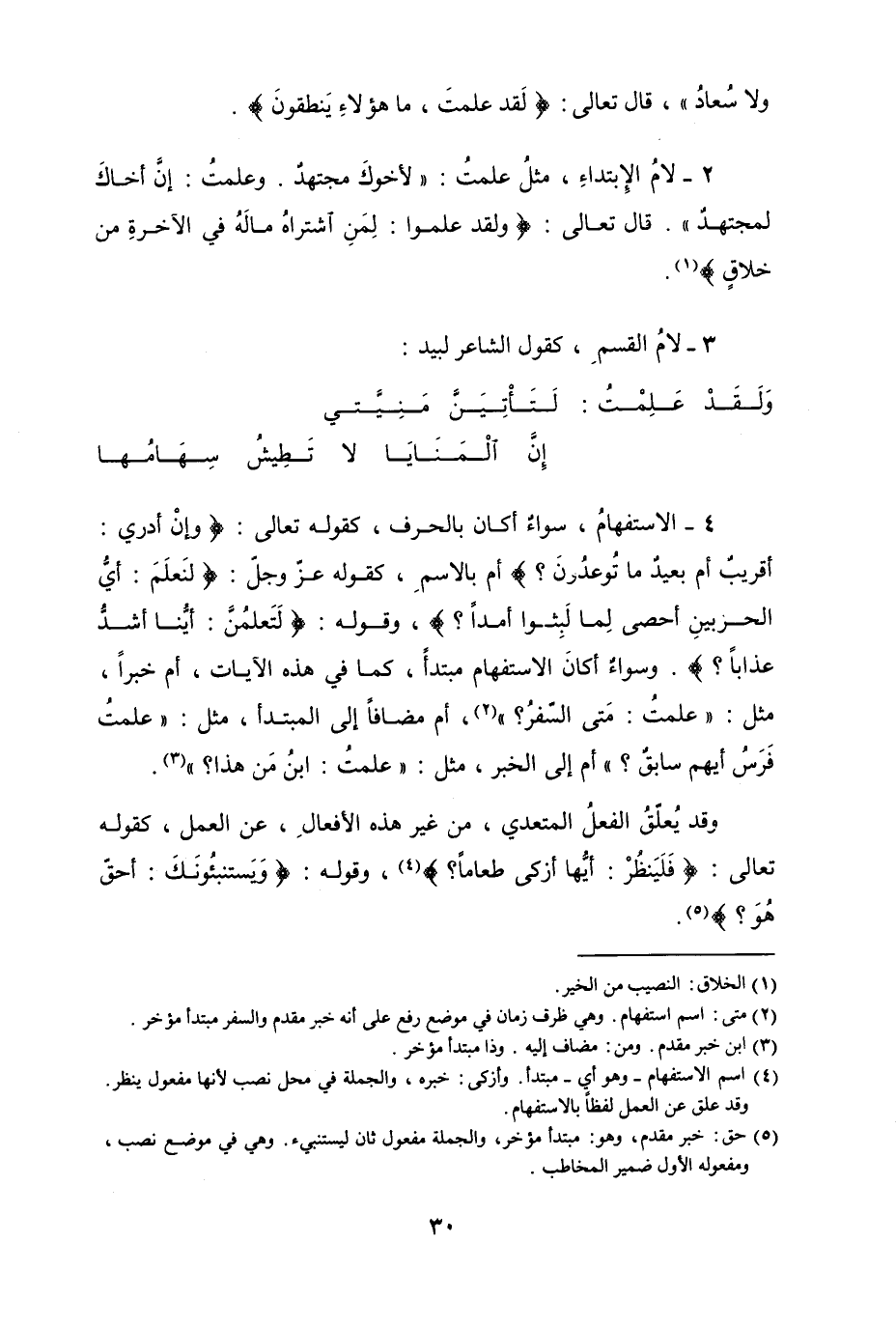 2- لامُ الابتداءِ، مثلُ علمتُ "لأخوكَ مجتهدٌ. وعلمتُ إنَّ أخاكَ لمجتهدٌ". قال تعالى {ولقد علموا لِمَنِ اشتراهُ مالَهُ في الآخرةِ من خلاقٍ} .