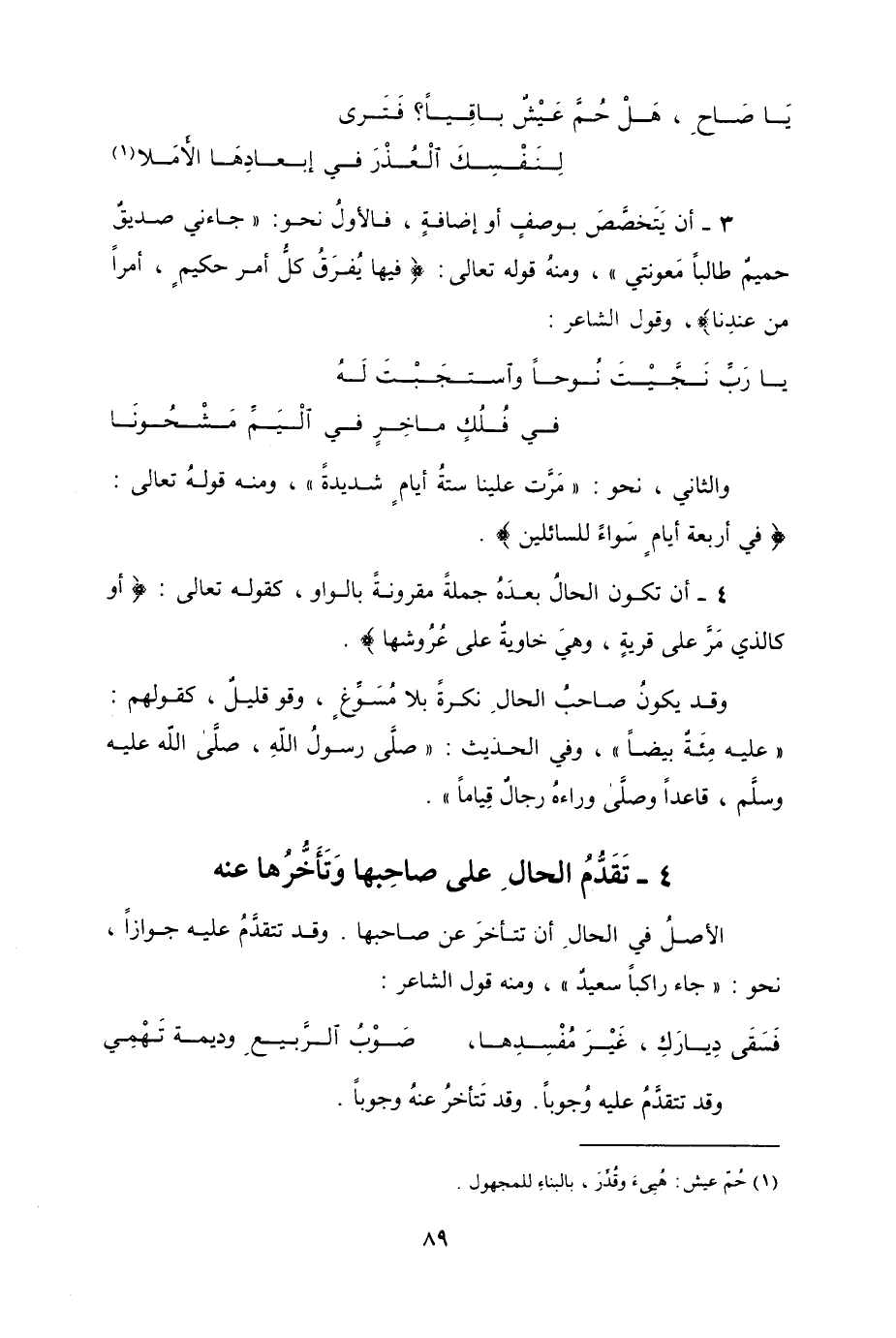 4- تَقَدُّمُ الحالِ على صاحِبها وتَأَخُّرُها عنه