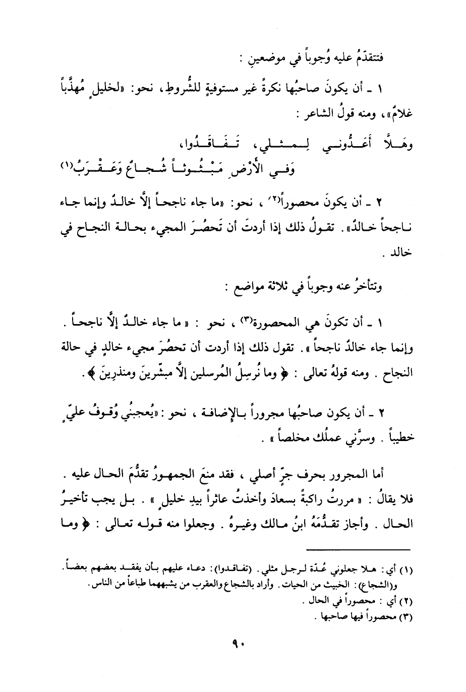 2- أن يكونَ محصوراً، نحو "ما جاء ناجحاً إلا خالدٌ وإنما جاء ناجحاً خالدٌ". تقولُ ذلك إذا أردتَ أن تَحصُرَ المجيء بحالة النجاح في خالد.