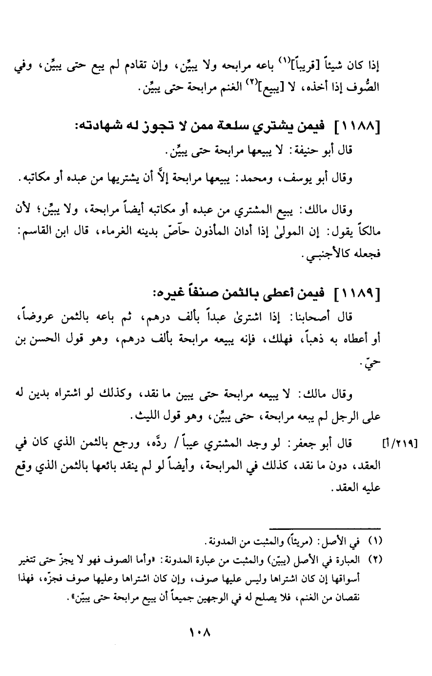 وَقَالَ أَبُو يُوسُف وَمُحَمّد يَبِيعهَا مُرَابحَة إِلَّا أَن يَشْتَرِيهَا من عَبده اَوْ مكَاتبه