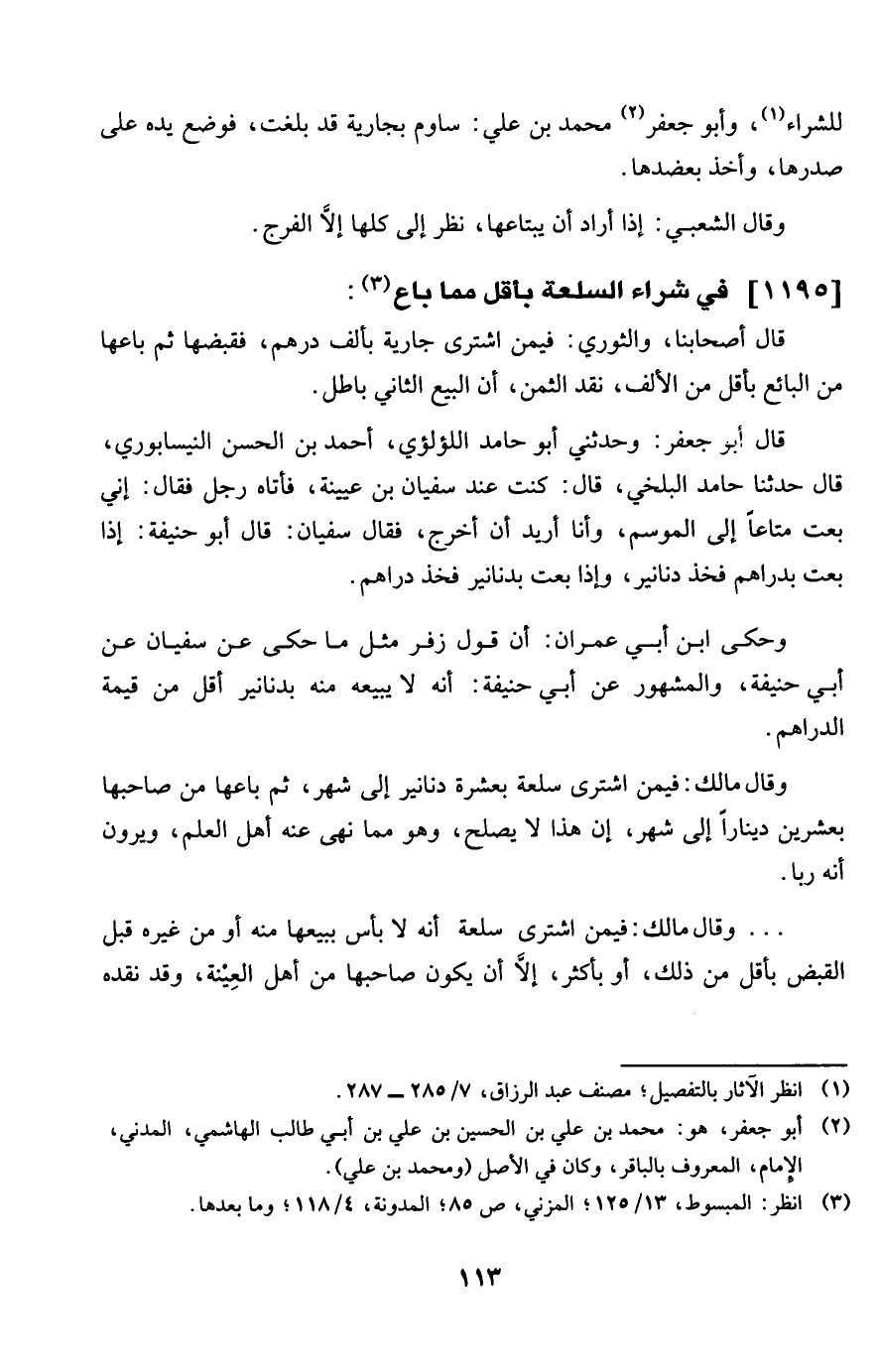 1195 - فِي شِرَاء السّلْعَة بِأَقَلّ مِمَّا بَاعَ