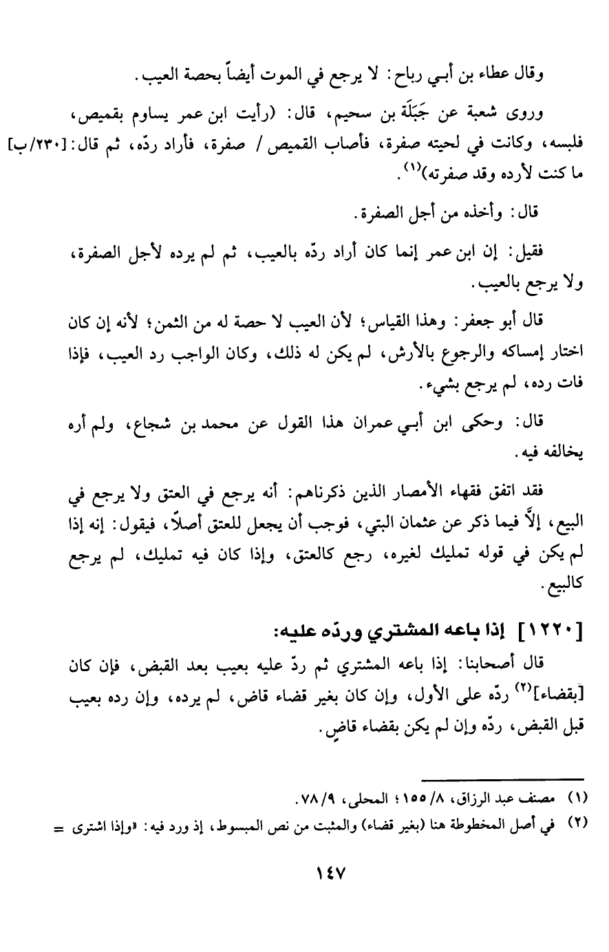 1220 - إِذا بَاعه المُشْتَرِي ورده عَلَيْهِ