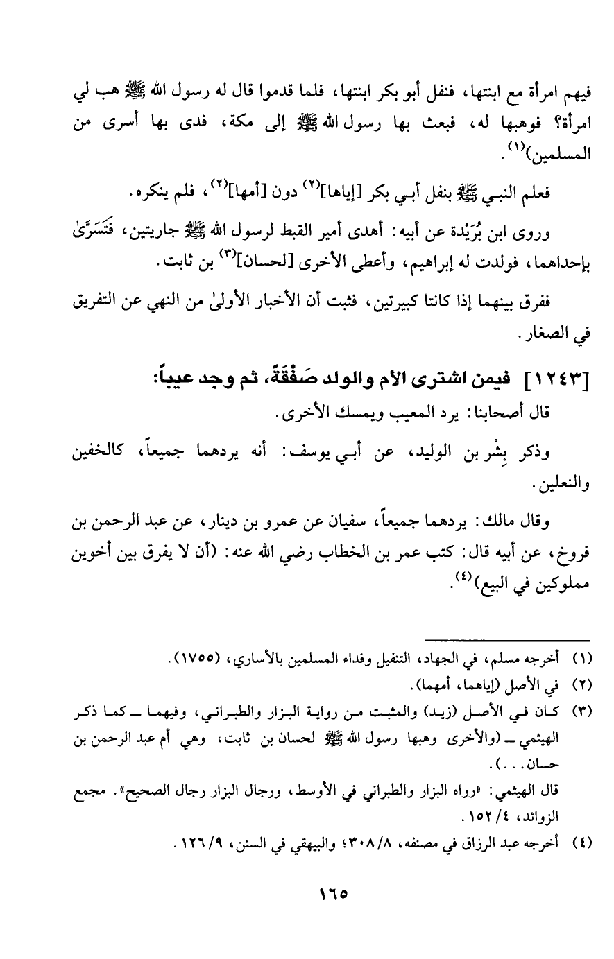 1243 - فِيمَن اشْترى الْأُم وَالْولد صَفْقَة ثمَّ وجد عَيْبا