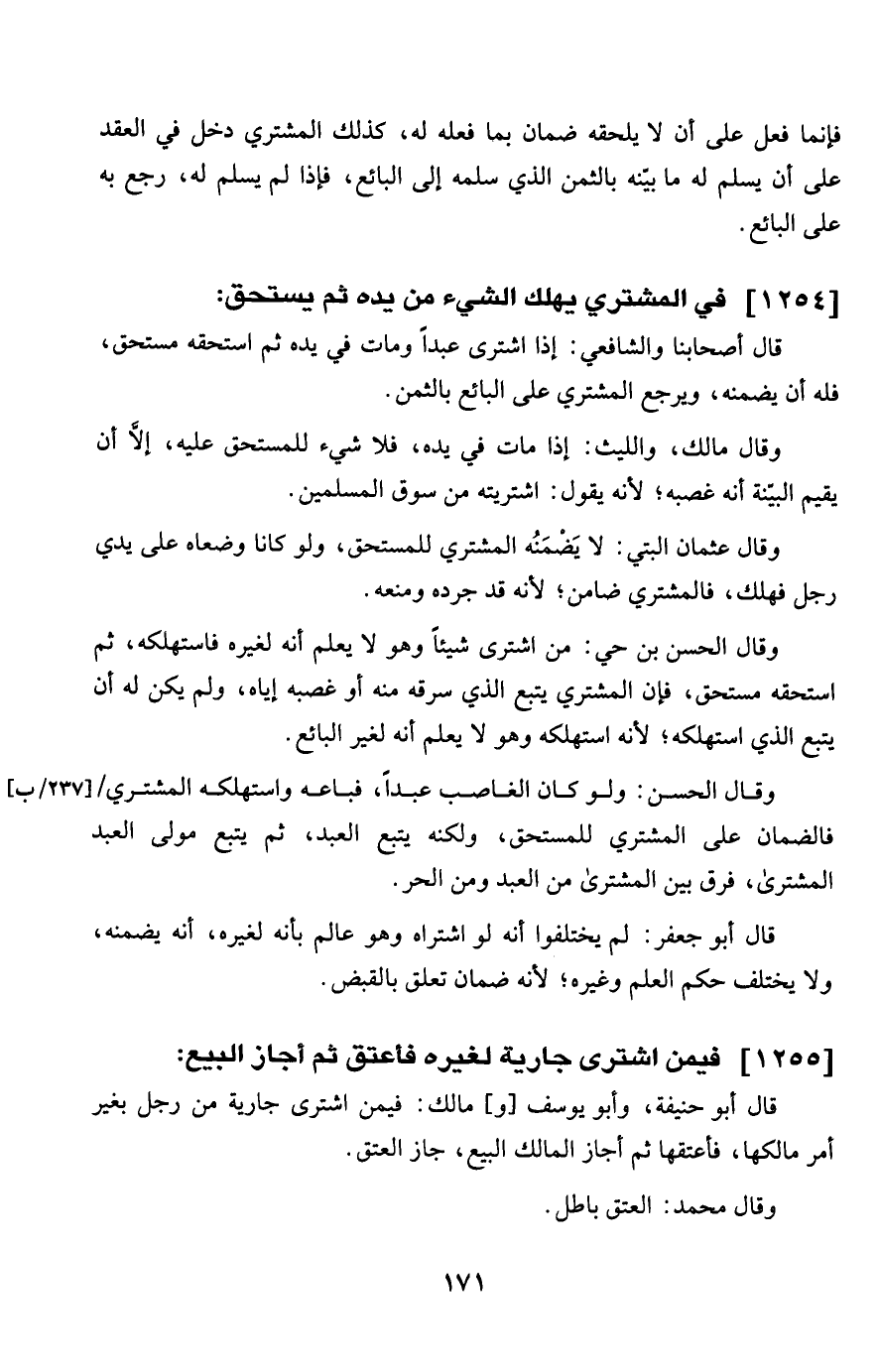 1254 - فِي المُشْتَرِي يهْلك الشَّيْء من يَده ثمَّ يسْتَحق