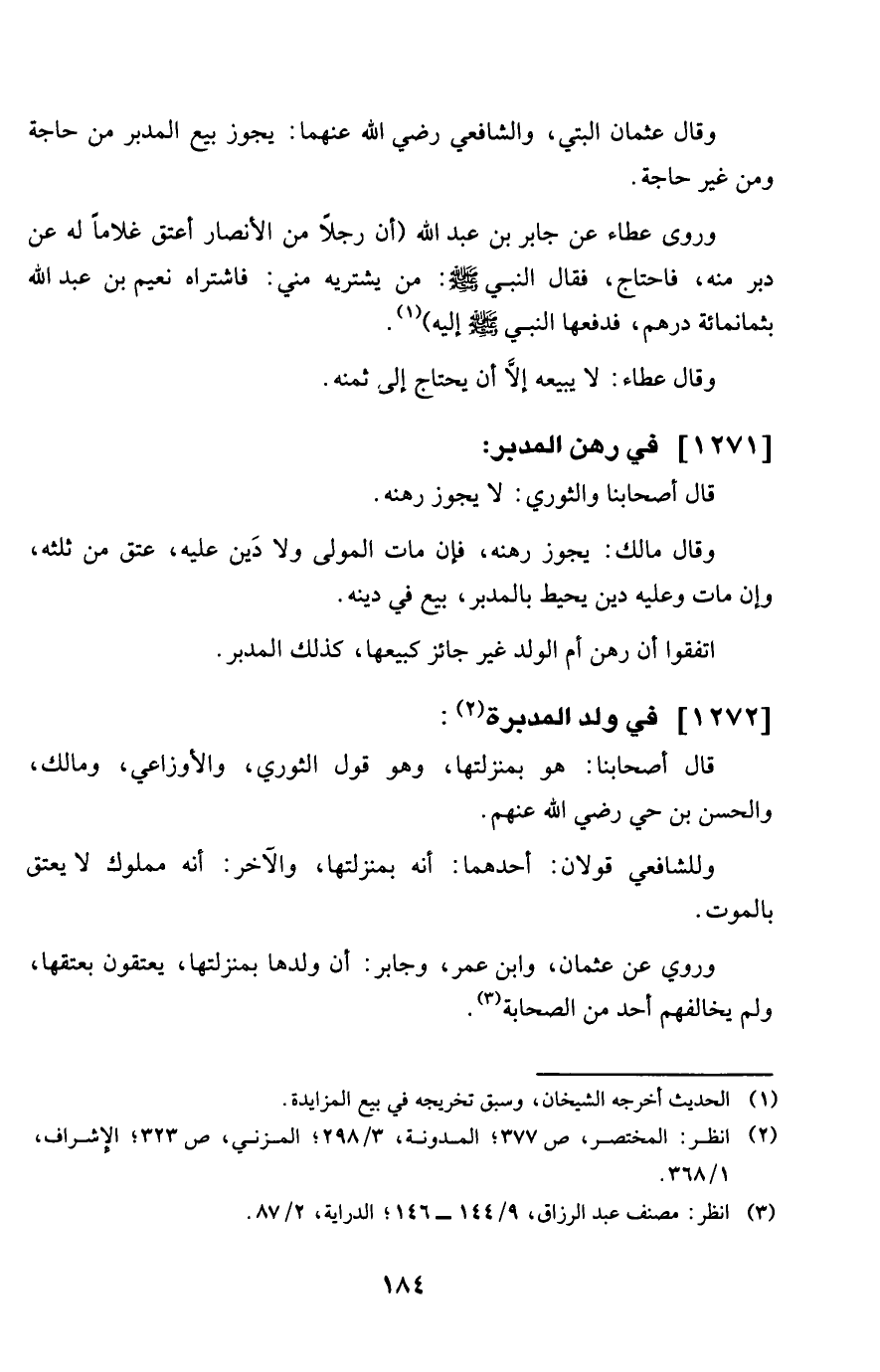 وروى عَطاء عَن جَابر بن عبد الله أَن رجلا من الْأَنْصَار أعتق غُلَاما لَهُ عَن دبر مِنْهُ فَاحْتَاجَ فَقَالَ النَّبِي صلى الله عَلَيْهِ وَسلم من يَشْتَرِيهِ مني فَاشْتَرَاهُ نعيم بن عبد الله بثمانمائة دِرْهَم فدفها النَّبِي صلى الله عَلَيْهِ وَسلم إِلَيْهِ