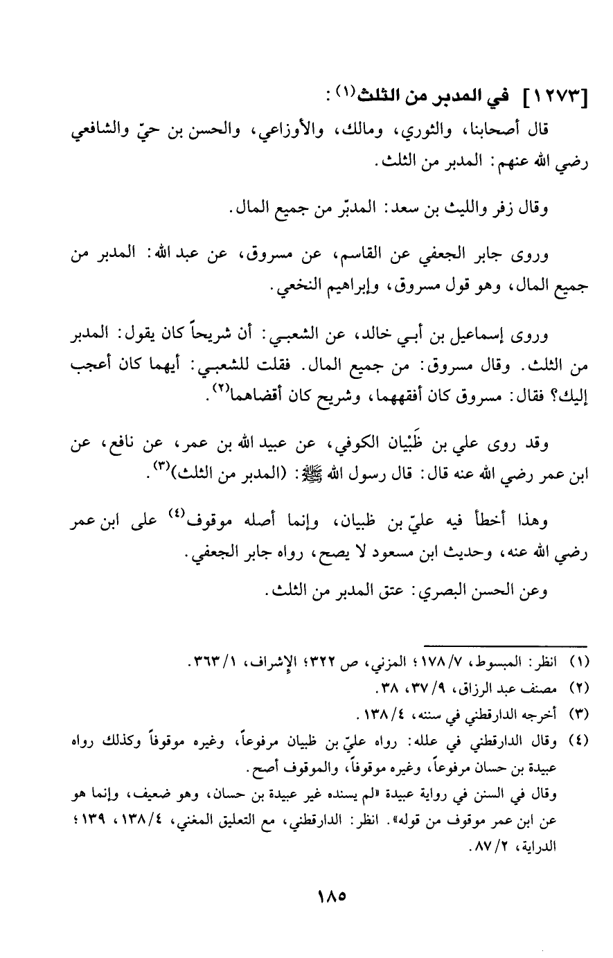 وروى جَابر الْجعْفِيّ عَن الْقَاسِم عَن مَسْرُوق عَن عبد الله الْمُدبر من جَمِيع المَال وَهُوَ قَول مَسْرُوق وَإِبْرَاهِيم النَّخعِيّ