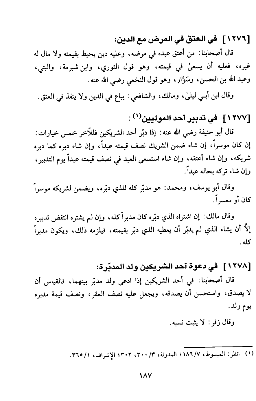1278 - فِي دَعْوَة أحد الشَّرِيكَيْنِ ولد الْمُدبرَة