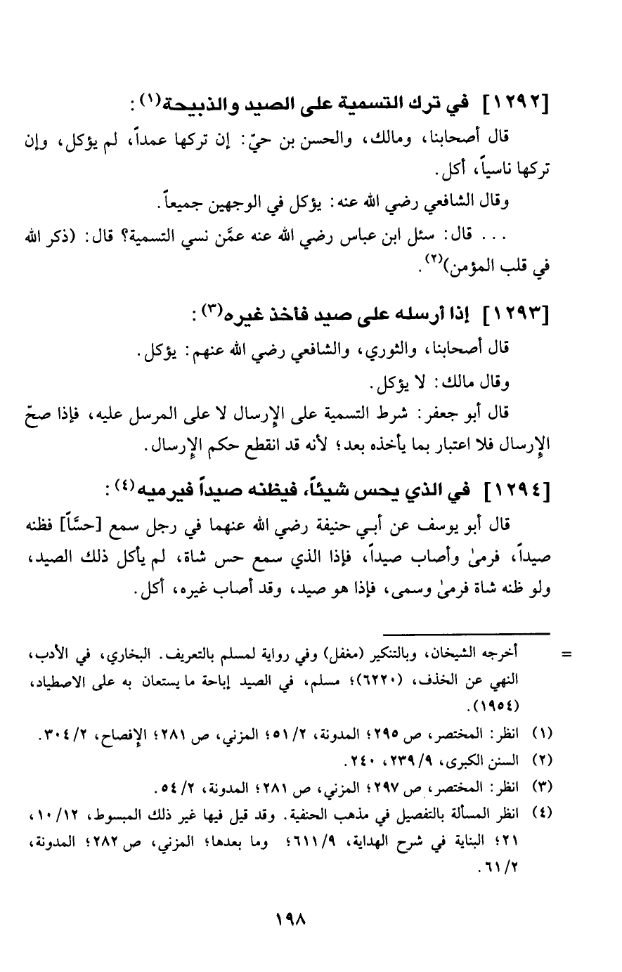 1292 - فِي ترك التَّسْمِيَة على الصَّيْد والذبيحة