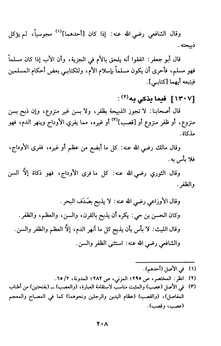 قَالَ أَصْحَابنَا لَا تجوز الذَّبِيحَة بظفر وَلَا بسن غير منزوع وَإِن ذبح بسن منزوع أَو ظفر منزوع أَو قصب أَو غَيره مِمَّا يفري الْأَوْدَاج وينهر الدَّم فَهُوَ مذكاة