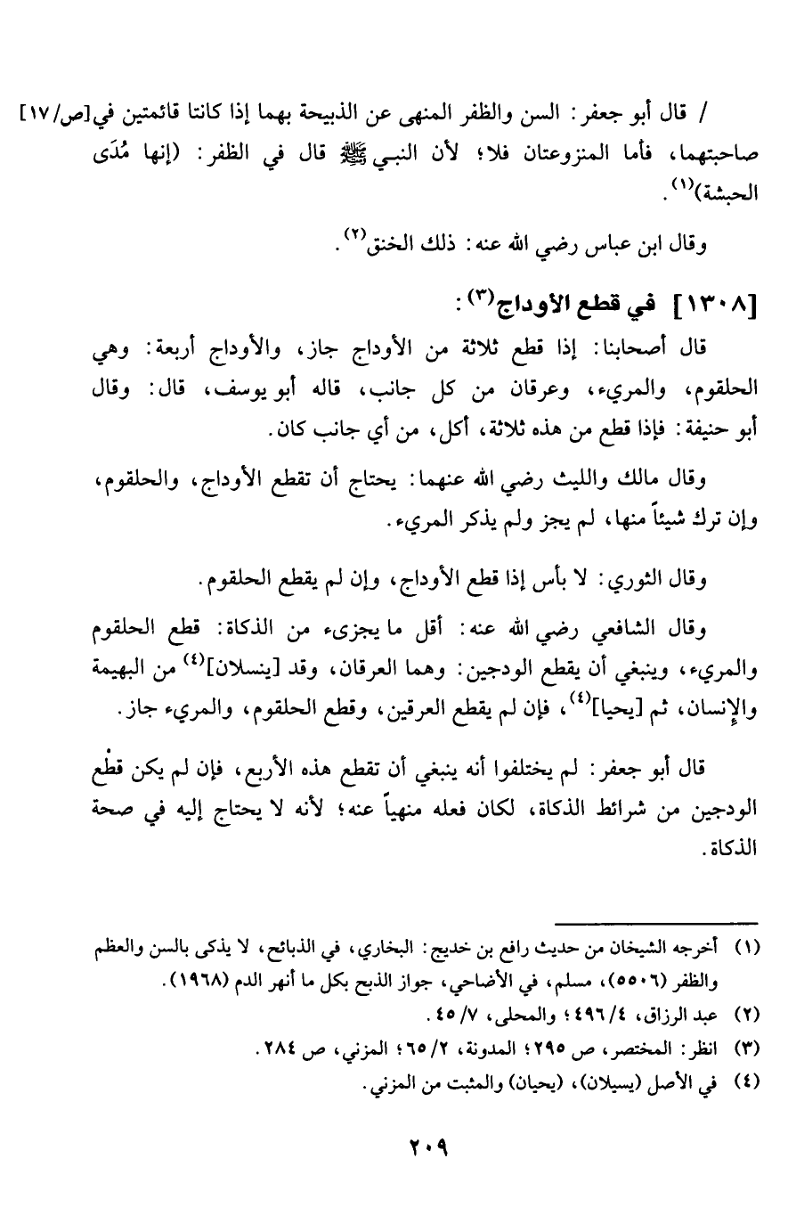 1308 - فِي قطع الْأَوْدَاج