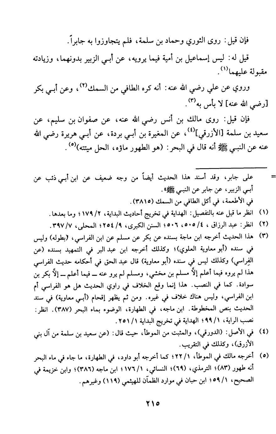 فَإِن قيل روى مَالك بن أنس رَضِي الله عَنهُ عَن صَفْوَان بن سليم عَن سعيد بن سَلمَة الْأَزْرَقِيّ عَن الْمُغيرَة بن أبي بردة عَن أبي هُرَيْرَة رَضِي الله عَنهُ عَن النَّبِي صلى الله عَلَيْهِ وَسلم أَنه قَالَ فِي الْبَحْر هُوَ الطّهُور مَاؤُهُ الْحل ميتَته