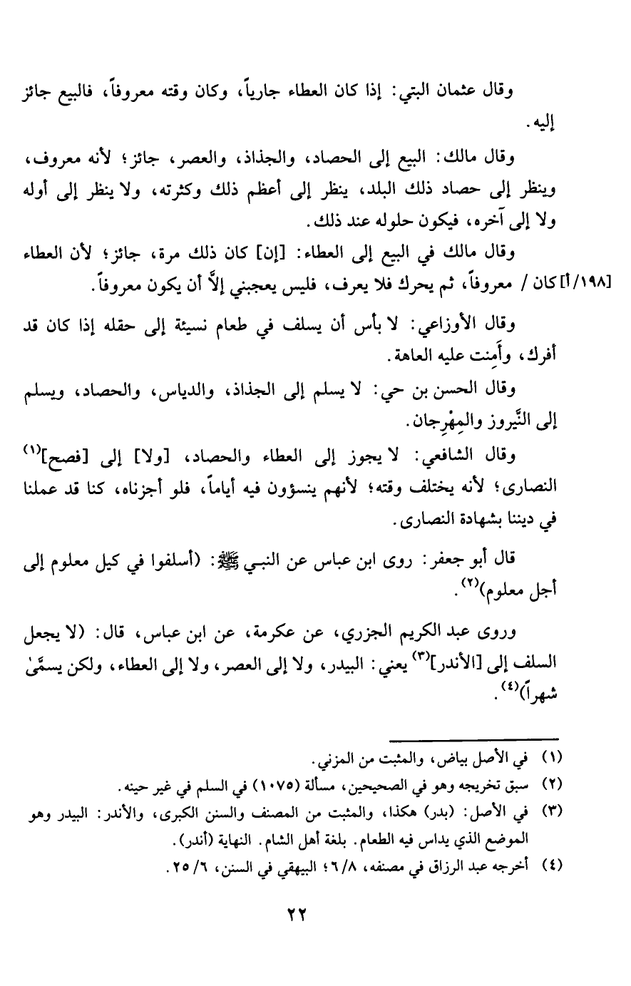 وروى عبد الْكَرِيم الْجَزرِي عَن عِكْرِمَة عَن ابْن عَبَّاس قَالَ لايجعل السّلف إِلَى الأندر يَعْنِي البيدر وَلَا إِلَى الْعَصْر وَلَا إِلَى الْعَطاء وَلَكِن يُسمى شهرا