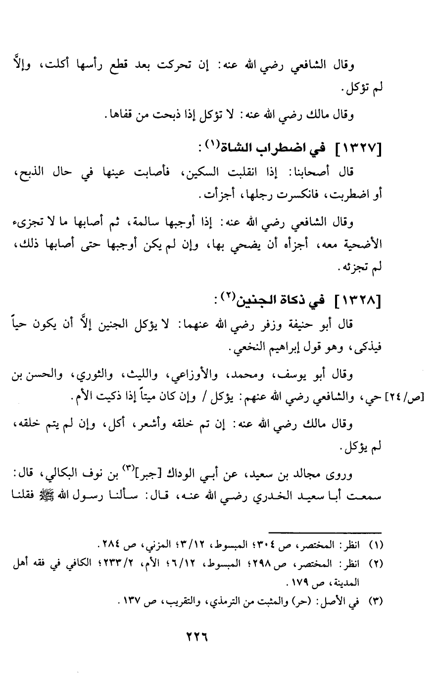 وَقَالَ مَالك رَضِي الله عَنهُ إِن تمّ خلقه وأشعر أكل وَإِن لم يتم خلقه لم يُؤْكَل