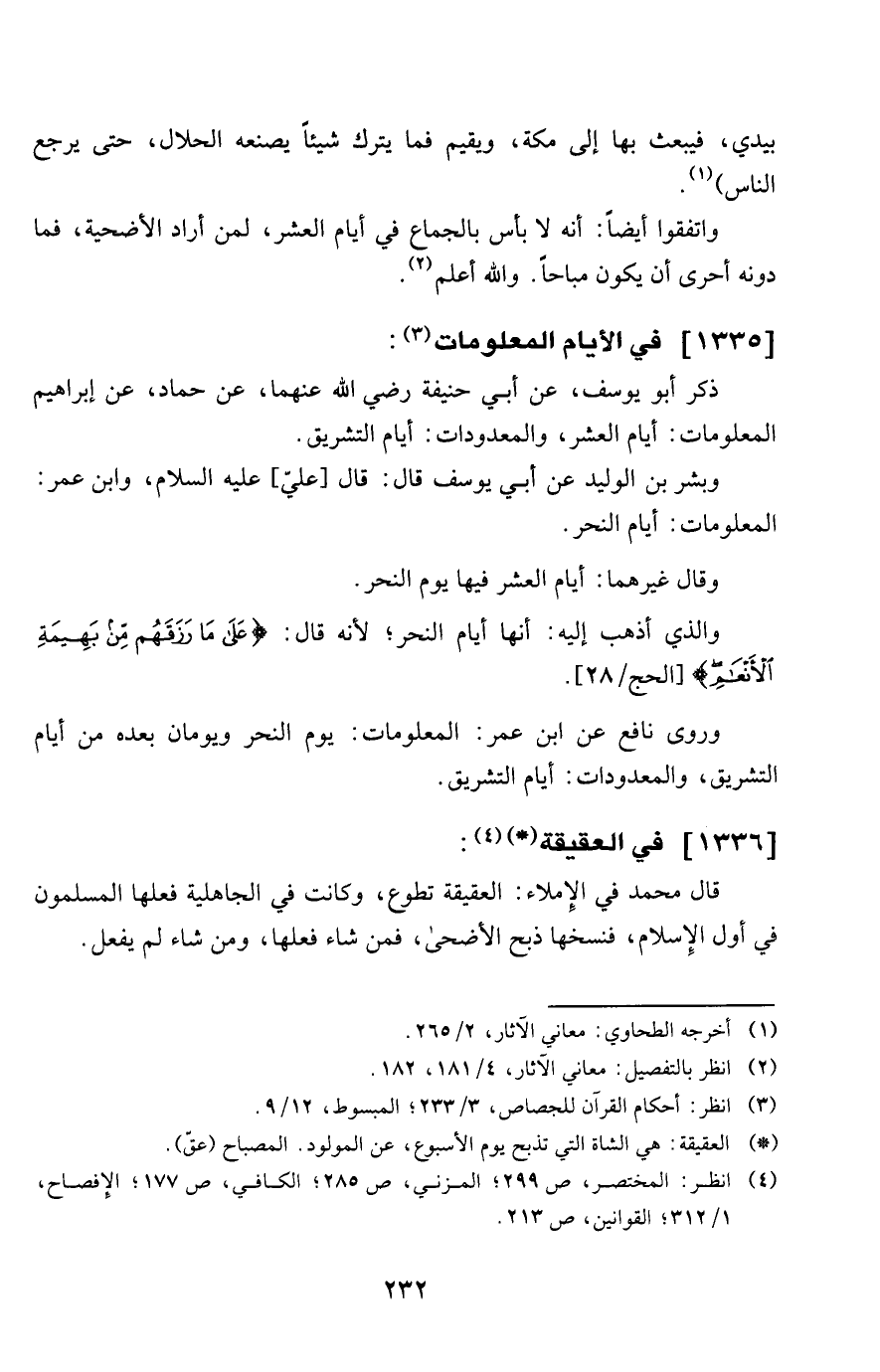 - قَالَ مُحَمَّد فِي الاملاء الْعَقِيقَة تطوع وَكَانَت فِي الْجَاهِلِيَّة فعلهَا الْمُسلمُونَ فِي أول الاسلام فنسخها ذبح الْأَضْحَى فَمن شَاءَ فعلهَا وَمن شَاءَ لم يفعل