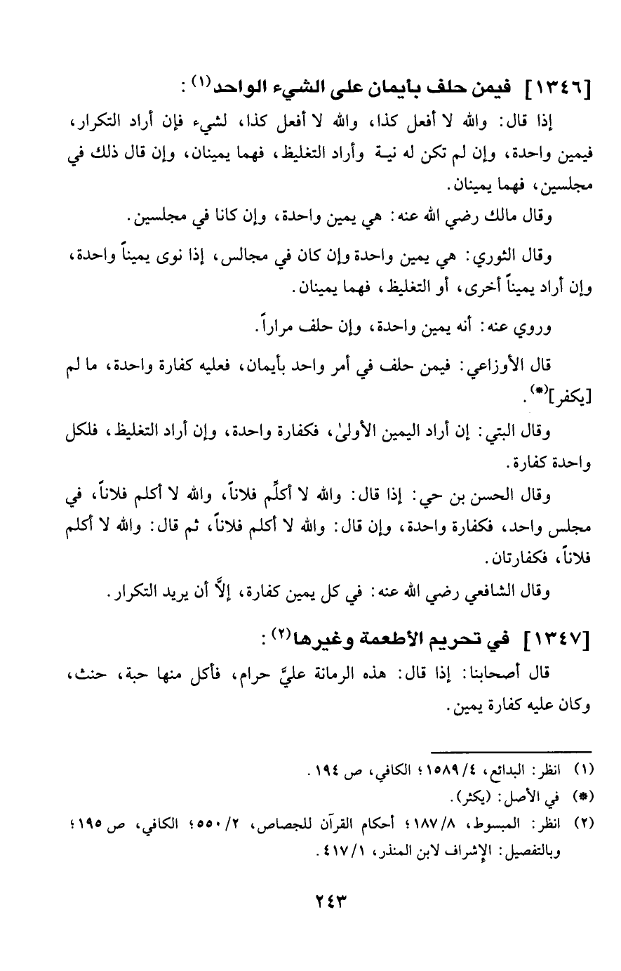 1346 - فِيمَن حلف بأيمان على الشَّيْء الْوَاحِد