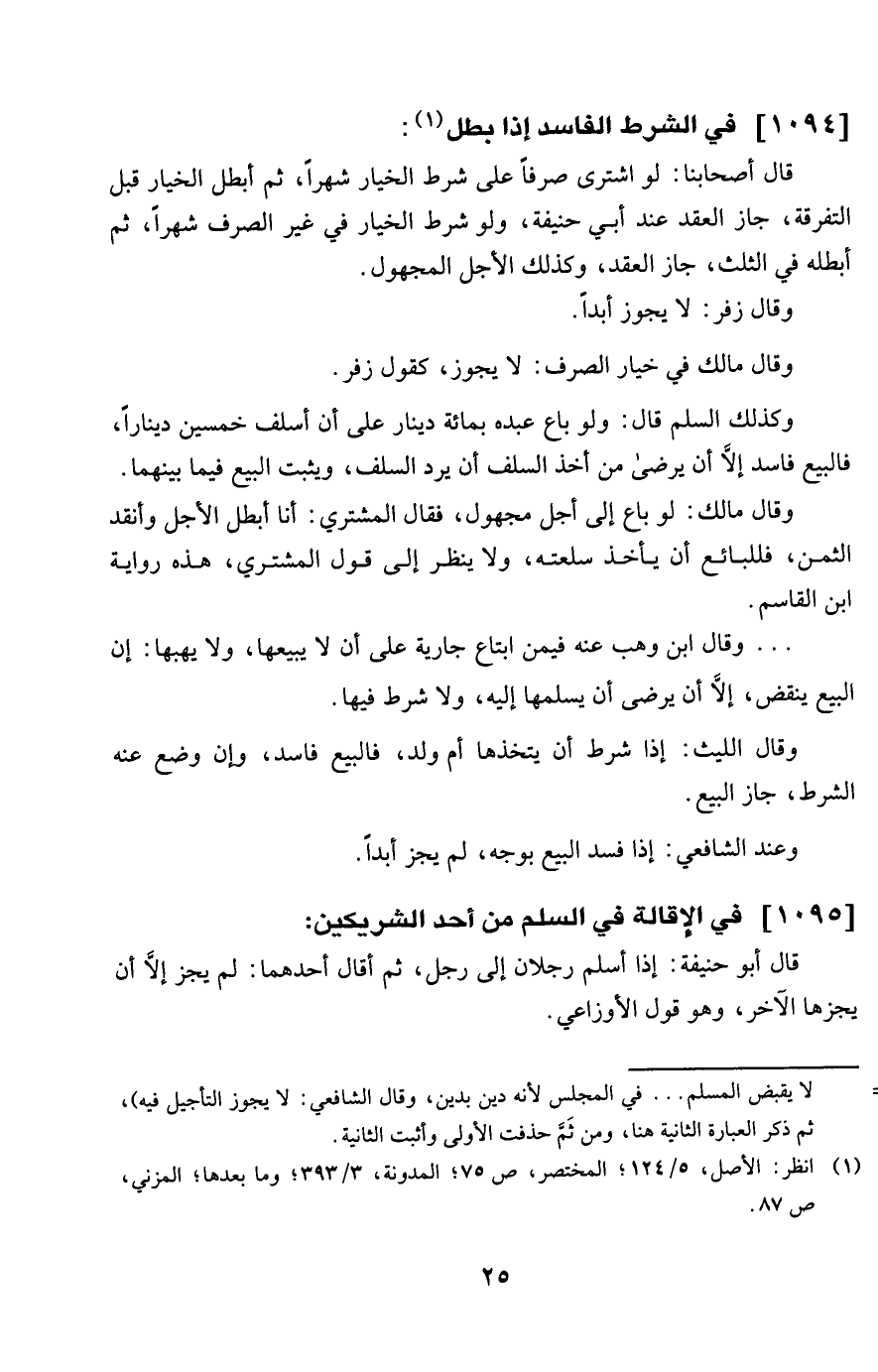 1095 - فِي الْإِقَالَة فِي السّلم من أحد الشَّرِيكَيْنِ