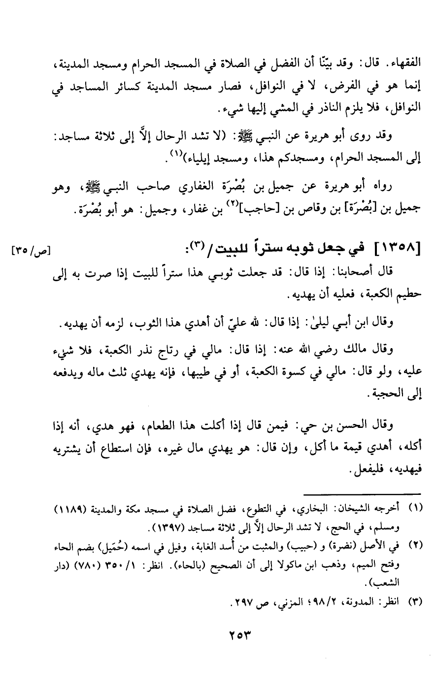 الْفُقَهَاء قَالَ وَقد بَينا أَن الْفضل فِي الصَّلَاة فِي الْمَسْجِد الْحَرَام وَمَسْجِد الْمَدِينَة إِنَّمَا هُوَ فِي الْفَرْض لَا فِي النَّوَافِل فَصَارَ مَسْجِد الْمَدِينَة كَسَائِر الْمَسَاجِد فِي النَّوَافِل فَلَا يلْزم النَّاذِر فِي الْمَشْي إِلَيْهَا شَيْء