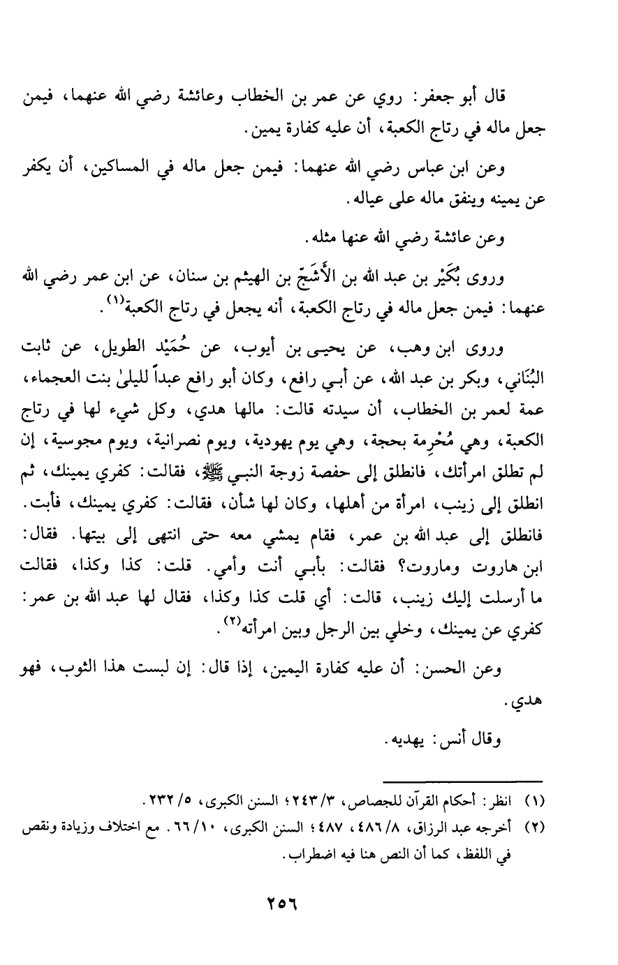 قَالَ أَبُو جَعْفَر روى عَن عمر بن الْخطاب وَعَائِشَة رَضِي الله عَنْهُمَا فِيمَن جعل مَاله فِي رتاج الْكَعْبَة أَن عَلَيْهِ كَفَّارَة يَمِين