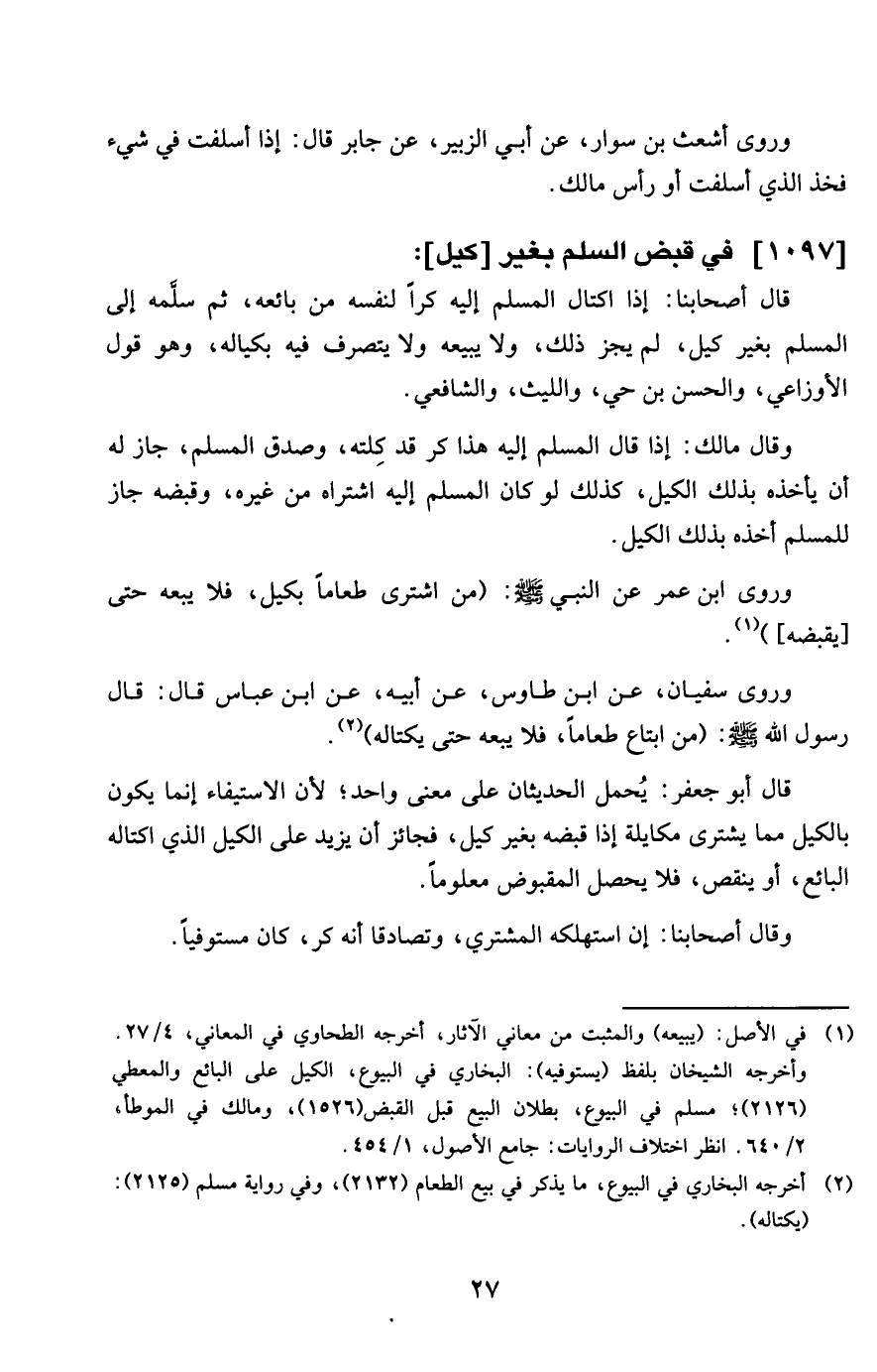 1097 - فِي قبض السّلم بِغَيْر كيل
