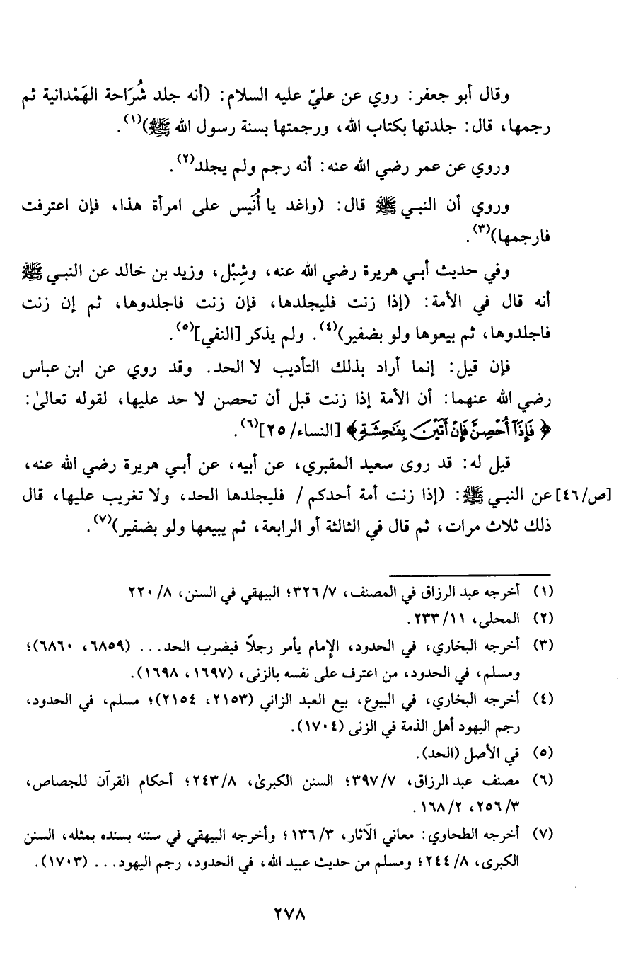 وَقَالَ أَبُو جَعْفَر رُوِيَ عَن عَليّ عَلَيْهِ السَّلَام أَنه جلد شراحة الهمدانية ثمَّ رَجمهَا قَالَ جلدتها بِكِتَاب الله ورجمتها بِسنة رَسُول الله صلى الله عَلَيْهِ وَسلم