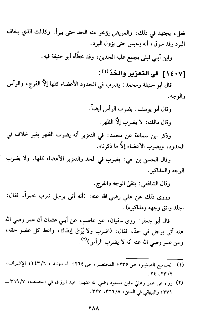 قَالَ أَبُو جَعْفَر روى سُفْيَان عَن عَاصِم عَن أبي عُثْمَان أَن عمر رَضِي الله عَنهُ أَتَى بِرَجُل فِي حد فَقَالَ اضْرِب وَلَا يرى إبطاك واعط كل عُضْو حَقه وَعَن عمر رَضِي الله عَنهُ أَنه لَا يضْرب الرَّأْس