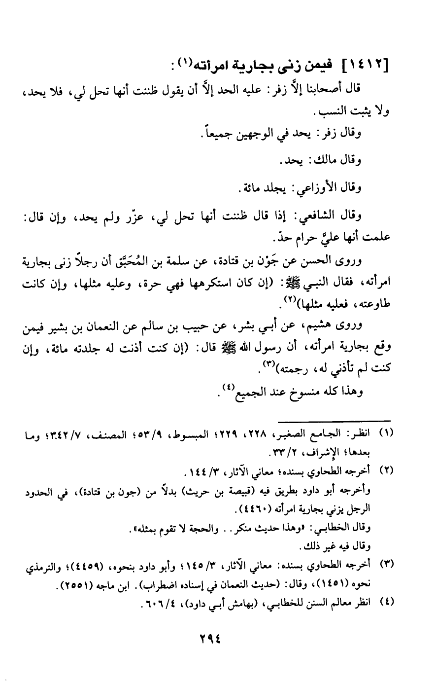 1412 - فِيمَن زنى بِجَارِيَة امْرَأَته