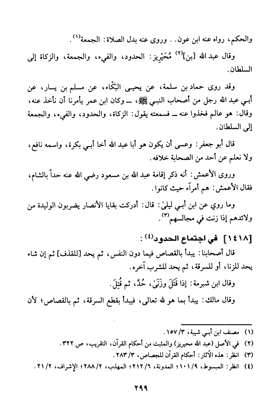 وَقَالَ عبد الله بن محيريز الْحُدُود والفيء وَالْجُمُعَة وَالزَّكَاة إِلَى السُّلْطَان
