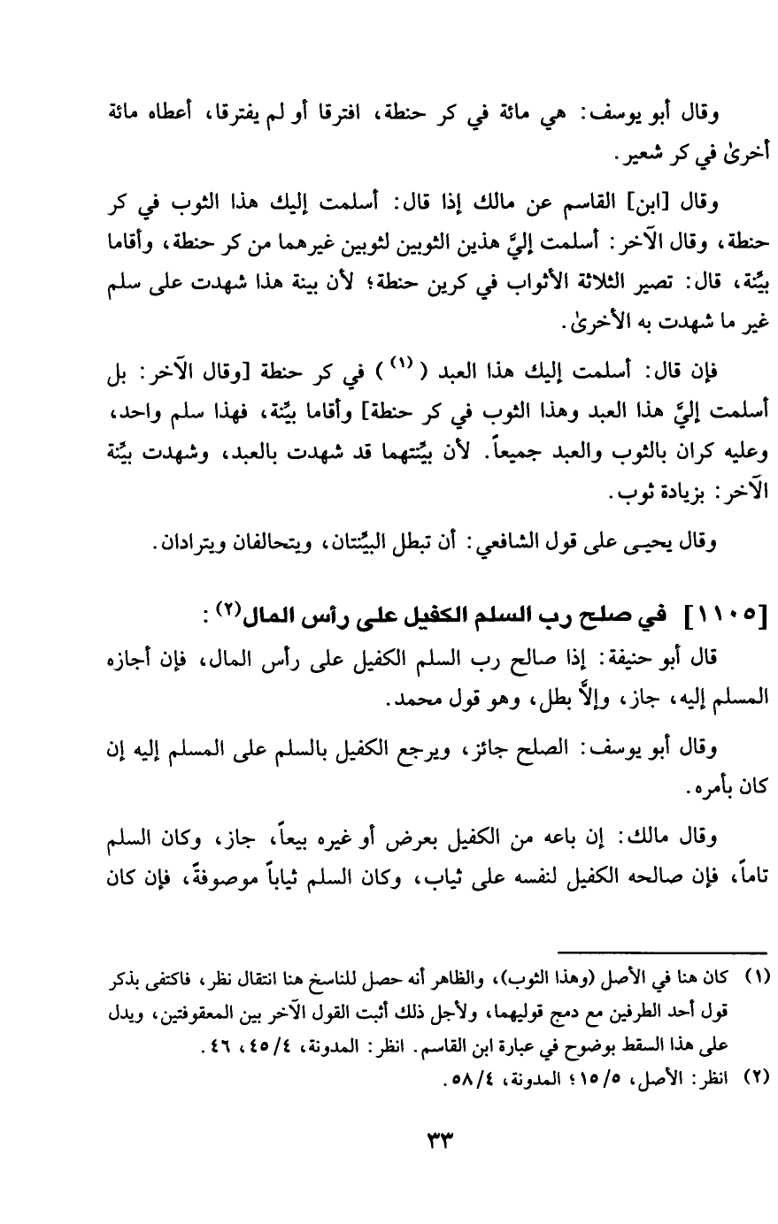 1105 - فِي صلح رب السّلم الْكَفِيل على رَأس المَال