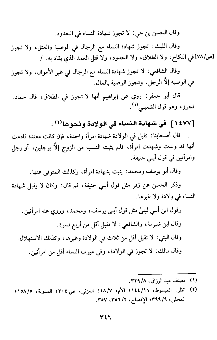 1477 - فِي شَهَادَة النِّسَاء فِي الْولادَة وَنَحْوهَا