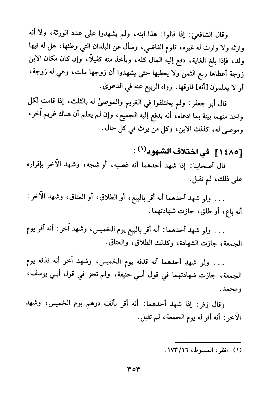 1485 - فِي اخْتِلَاف الشُّهُود