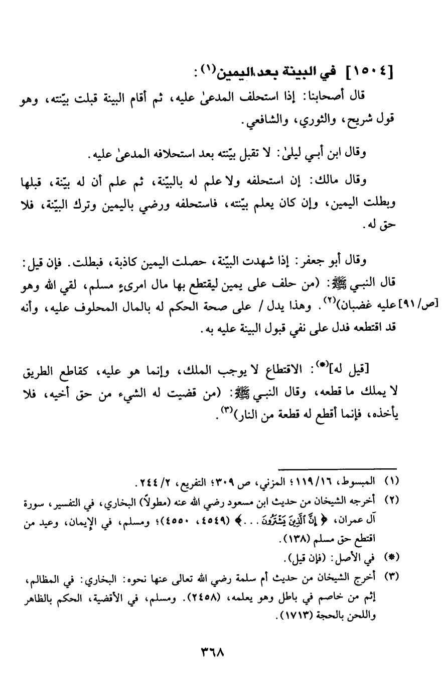وَقَالَ أَبُو جَعْفَر إِذا شهِدت البنية حصلت الْيَمين كَاذِبَة فطلبت فَإِن قبل قَالَ النَّبِي صلى الله عَلَيْهِ وَسلم من حلف على يَمِين ليقتطع بهَا مَال امْرِئ مُسلم لَقِي الله وَهُوَ عَلَيْهِ غَضْبَان وَهَذَا يدل على صِحَة الحكم لَهُ بِالْمَالِ الْمَحْلُوف عَلَيْهِ وَأَنه قد اقتطعه فَدلَّ على نفي قبُول البنية عَلَيْهِ بِهِ