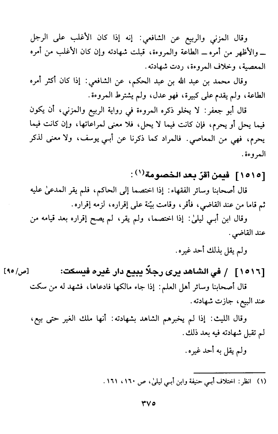 قَالَ أَبُو جَعْفَر لَا يَخْلُو ذكره الْمُرُوءَة فِي رِوَايَة الرّبيع والمزني أَن يكون فِيمَا يحل أَو يحرم فَإِن كَانَت فِيمَا لَا يحل فَلَا معنى لمراعاتها وَإِن كَانَت فِيمَا يحرم فَهِيَ من الْمعاصِي فَالْمُرَاد كَمَا ذكرنَا عَن أبي يُوسُف وَلَا معنى لذكر الْمُرُوءَة